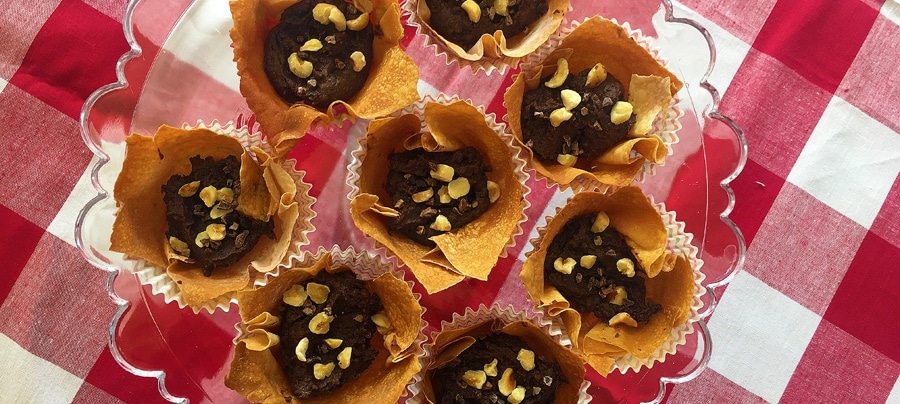 Je kunt ook filodeeg bakjes vullen met de spread zoals op de foto. Vet hiervoor een cupcake vorm in en bedek dit met filodeeg. Bak het ongeveer 6-7 minuten op 175 graden. Houd het goed in de gaten zodat het niet verbrand.