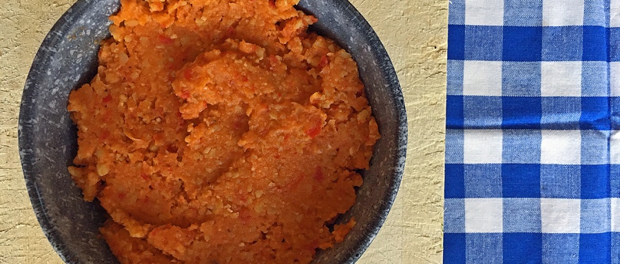 - Pureer alle ingrediënten in een keukenmachine en verdun de consistentie eventueel met nog wat extra water.