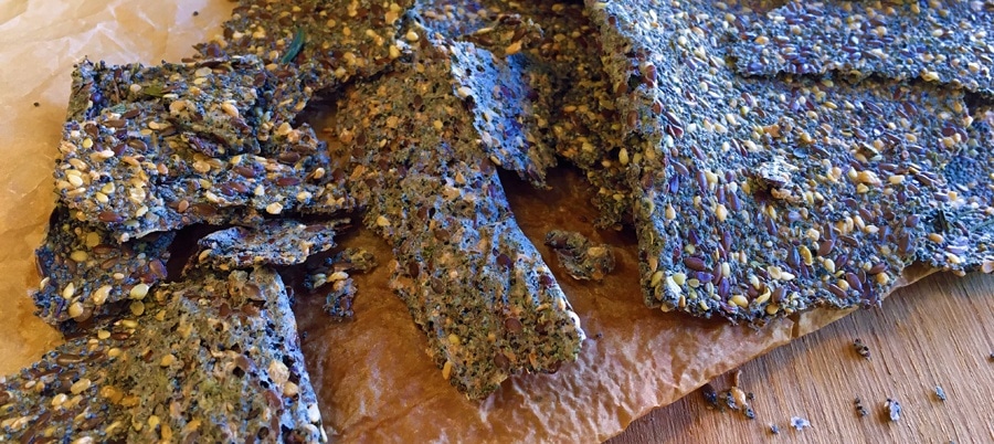 Lijnzaad crackers kun je heel gemakkelijk zelf maken. Je stopt er precies in wat je erin wilt hebben. Vol met goede vetten zoals omega 3. De zaden in de lijnzaad crackers kun je aanpassen naar wat je in huis hebt. Je kunt de maanzaad ook aanpassen naar pompoenpitten of zonnebloempitten. Door de chia zaad wordt het een gelei. Deze zou ik dus wel in het recept houden. Je kunt ook de specerijen aanpassen naar eigen smaak. Specerijen zoals komijn, ras el hanout, dille, mosterdzaad, knoflookpoeder en paprikapoeder zijn ook lekker om toe te voegen. Het is lekker om te eten bij een salade, maar lekker om zo op te eten als tussendoortje.