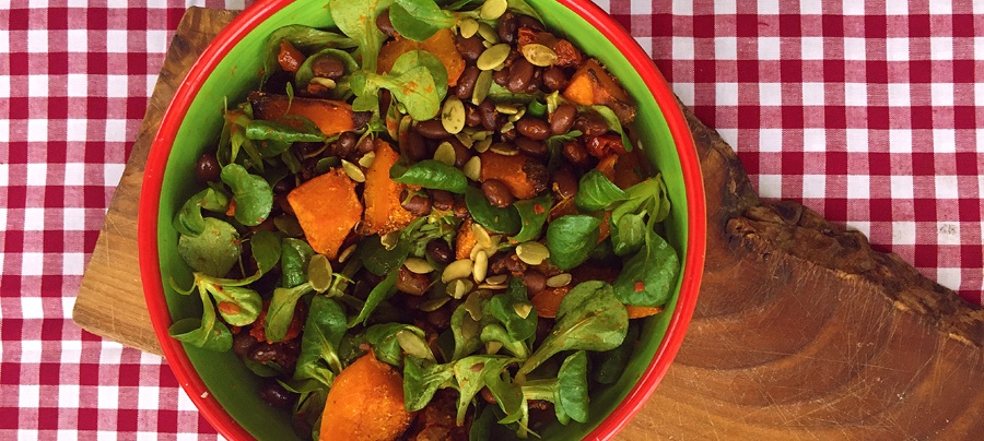 Pompoen salade met ajvar en bonen